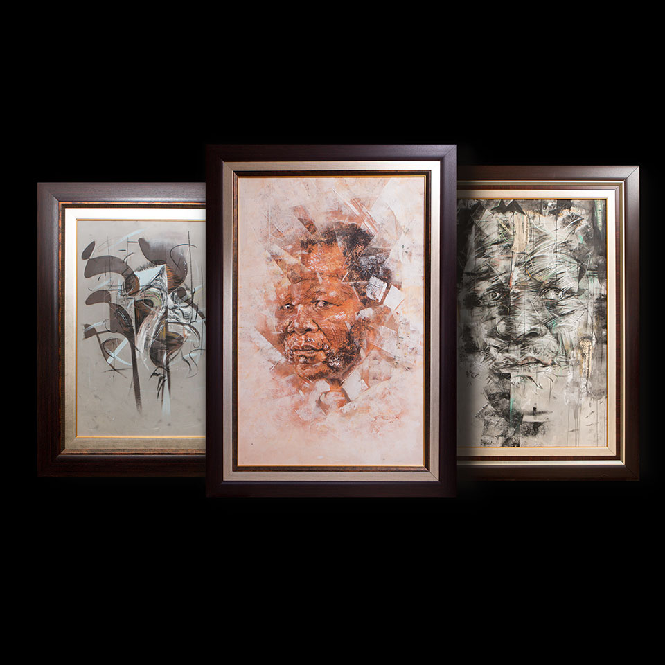 Vusi Mbulali is a South African born, paint artist who specialises in portrait painting. His most recent work includes painting South African heroes such as the late Nelson Mandela, Oliver Tambo and Steve Biko (you can find a number of his art pieces at the Steve Biko Foundation). Discovered when he was only 12 years old, Mbulali uses abstract art techniques to express a unique interpretation of the iconic faces he paints. He is also highly sought after for both family and individual portraits. His professional career spans well over 10 years painting experience and his clientele includes both private individuals and public figures. Mbulali’s talent was discovered at school, when his principal gave him homework; to draw a human body and label it. His skill and precision was dumbfounding. This discovery launched Mbulali as the school artist. He became responsible for drawing charts, for teachers’ district assignments, portraits, school competition poster art and book illustrations for his, author teacher, at secondary school. While growing his art, Mbulali acquired and applied his skills in billboards sign writing and mural painting. His first solo exhibition took place in 2009 at Springs Art Gallery. Mbulali used this opportunity to display his retrospective portraits and to introduce a new technique in abstract art he had been working on. The reviews and feedback were overwhelmingly positive. He was also a part of just 30 artists to exhibit at the gallery as part of the 30 30 Contemporary Group Art Exhibition in 2014. He exhibited his abstract art which received a great review by Artist David Koloane (among others) making it an even greater success.